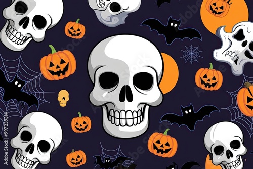 Fun 3D Halloween Illustration Featuring Spooky Ghostly Skulls
