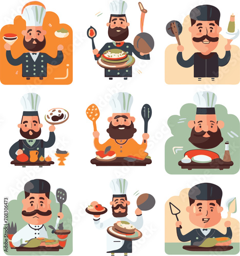 Fun and expressive vector characters, including chefs and food enthusiasts