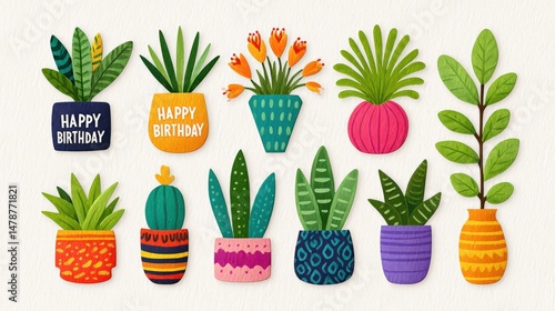 Fun and vibrant birthday stickers with "Happy Birthday" text in bold colors, playful shapes, and unique patterns, perfect for party decor or card embellishments.