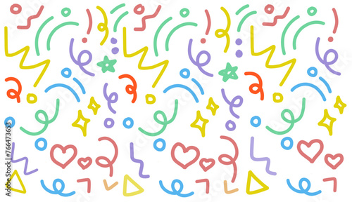 Fun colorful line doodle seamless pattern. Creative minimalist style art background for children or trendy design with basic shapes. Simple childish scribble backdrop.