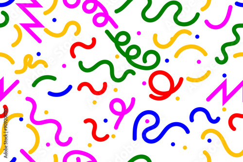 Fun colorful line doodle seamless pattern. Creative minimalist style art background for children or trendy design with basic shapes. Simple childish scribble backdrop.