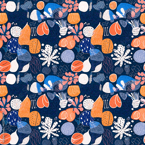 Fun modern coastal pattern clash fabric print for summer beach textile designs with a linen cotton effect. Seamless trendy repeat background