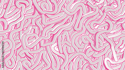Fun pink line doodle seamless pattern. Creative abstract squiggle style drawing background for children or trendy design with basic shapes.