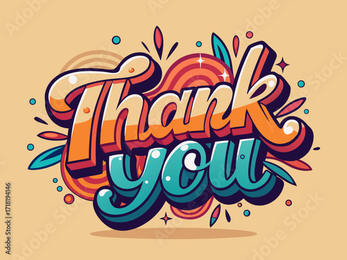 Fun playful thank you lettering with retro cartoon typography and abstract background elements