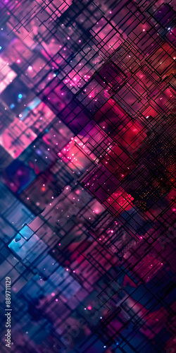 Fundo abstrato digital com formas geométricas e cores vibrantes