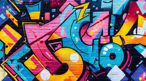 Funky chaotic graffiti bold and multi colored geometric shapes background
