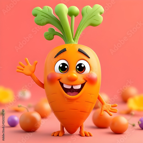 Funny 3D Cartoon Carrot Character with Big Smile
