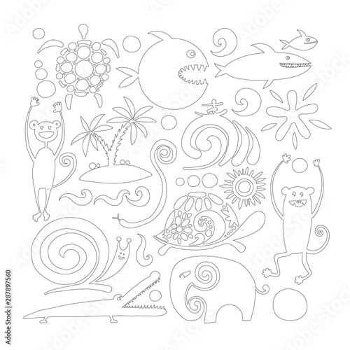 Funny animals, coloring page for your design