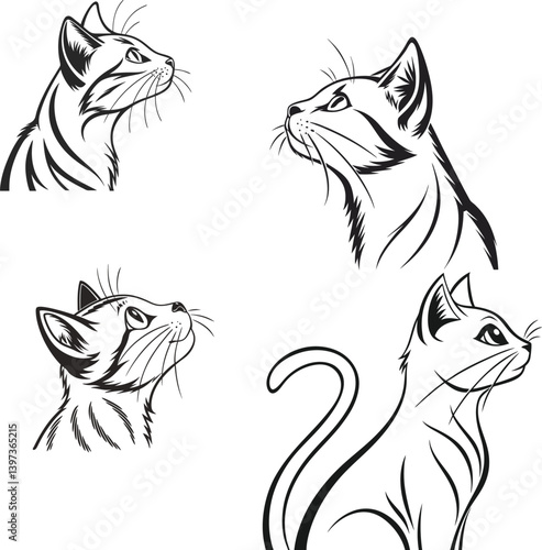 Funny cartoon cats and dogs set with cute kittens in black outline design