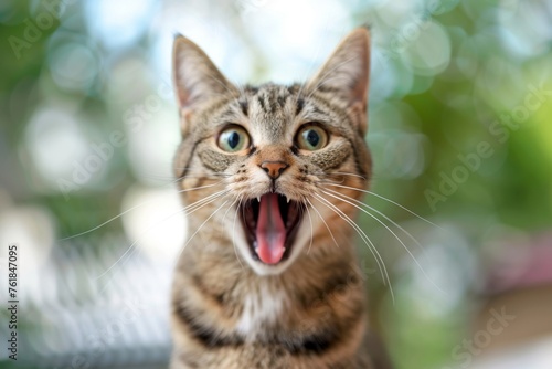 Funny cat looking shocked with mouth open