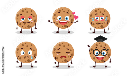 funny cookies cartoon character with different pose activity vector illustration