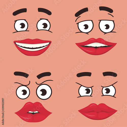 Funny Faces set Cartoon, Comics Face expressions vector collection