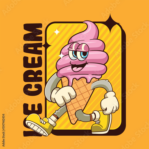 Funny Ice Cream Cartoon Characters in Retro 70s Illustration