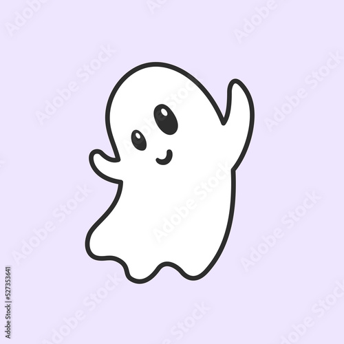 Funny little ghost. Cute cartoon character with smile. Halloween spirit. Little flying monster