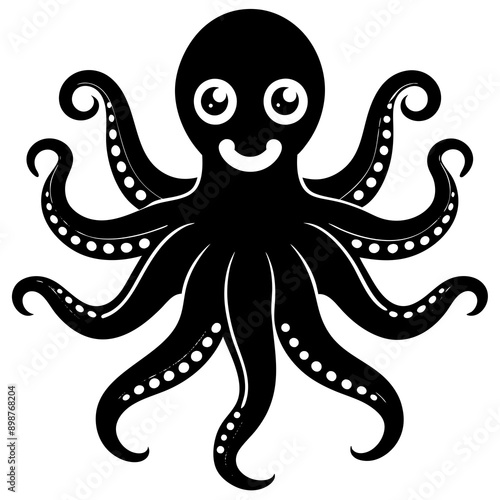 funny Octopus black vector silhouette