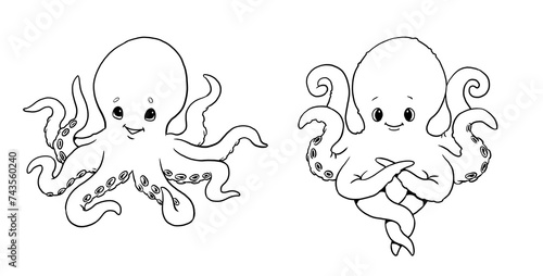 Funny octopus to color in. Template for a coloring book with sea animals. Coloring template for kids.