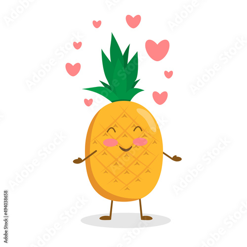 Funny pineapple with cute hearts. Cartoon character.