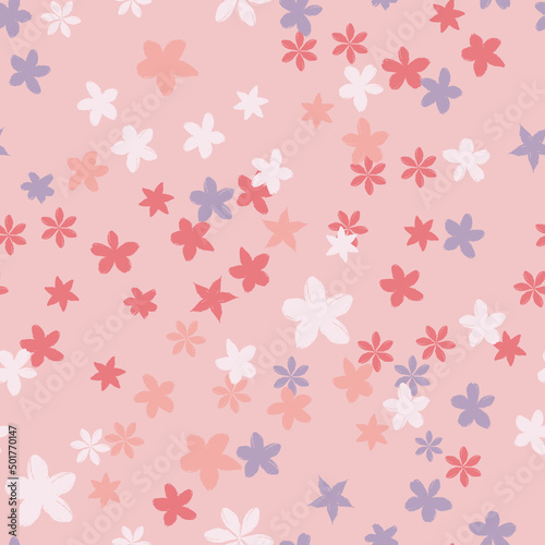 Funny seamless pattern with hand-drawn small flowers. Ditsy vector floral background with daisy and chamomile