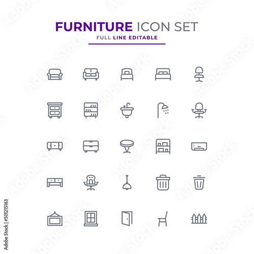 Furnish icons set simple illustration. contains a variety of furniture editable outline.