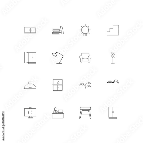 Furniture And Home Accents linear thin icons set. Outlined simple vector icons