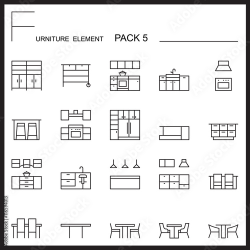 Furniture and home decorate line icons pack 5.Mono outline icons