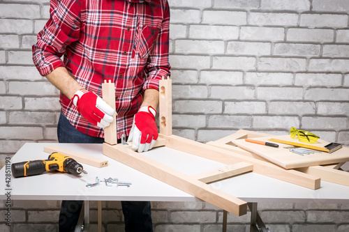 Furniture Installation. Carpenter is engaged in assembling the chair. Diy concept.
