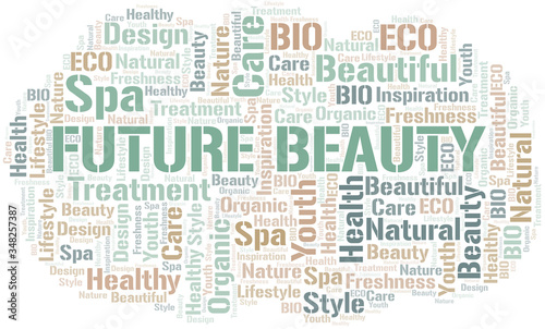Future Beauty word cloud collage made with text only.