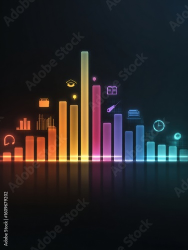 Future Education Timeline Represented Through a Glowing Bar Chart Highlighting Key Milestones and Achievements in Learning and Development