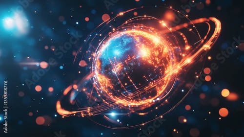 Futuristic 3D Render of Earth Surrounded by Orbiting Satellite Elements
