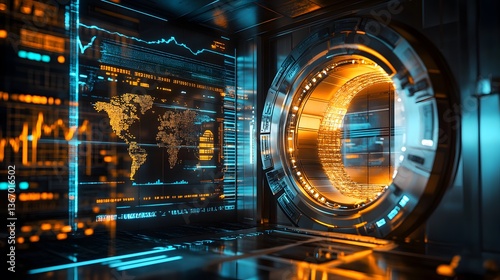 Futuristic 3d visualization of global gold reserves in a virtual environment