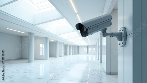 Futuristic 3D Wallpaper Design: AI-Powered Surveillance Systems in Expansive Spaces - Premium Digital Renderings for Modern Security Analytics and Professional Photo Stock