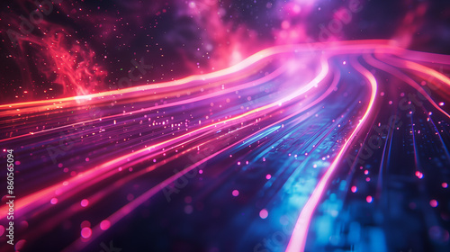 Futuristic abstract background, colorful bright neon rays and glowing lines. AI generative