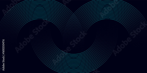 Futuristic abstract background with curved neon blue lines forming a wave-like symmetrical pattern on a dark background.