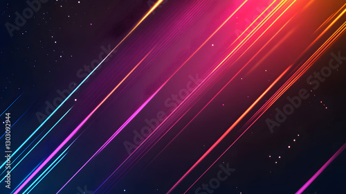 Futuristic abstract design with glowing neon lines and minimalist black space in the background