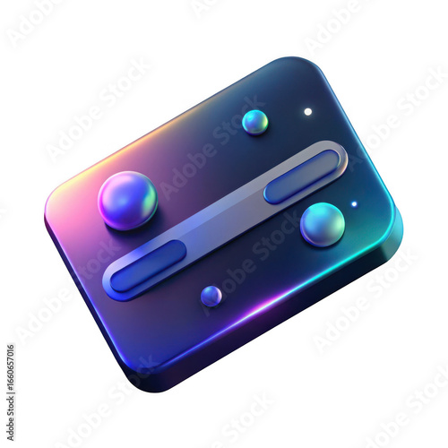 Futuristic abstract device with glowing neon edges and spheres isolated on transparent background