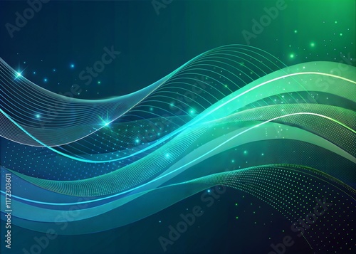 Futuristic Abstract Gradient with Neon Glow and Wavy Metallic Lines