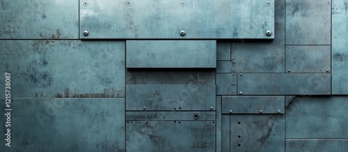 Futuristic Abstract Metal Wall Design with Textured Surfaces and Empty Space for Custom Text in a Dystopian Office Environment