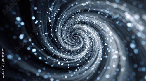 Futuristic abstract swirling blue light spiral with glowing particles. Dynamic vortex on a dark background, technology and science concept.