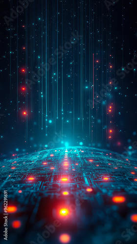 Futuristic Abstract Technological Background with Neon Grid and Digital Data Streams, Innovation, and Cyber Connectivity