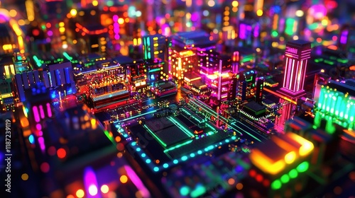 Futuristic Abstract Technology Landscape with Vibrant Neon Lights