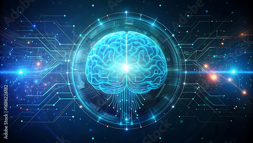 Futuristic ai brain hologram glowing with digital particles artificial intelligence concept technology innovation illustration abstract science art