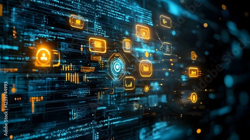 Futuristic AI Driven Digital Communication Concept with Glowing Chat Bubbles Abstract of a cyber inspired technology background featuring a matrix of data chat bubbles and glowing digital elements