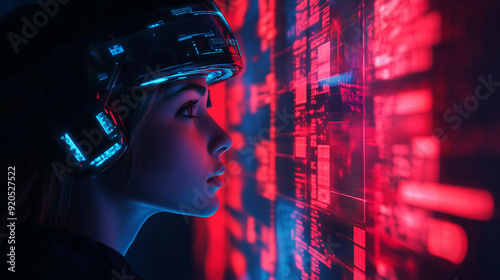 Futuristic AI Hologram - Cyberpunk Girl with Immersive Tech Headset