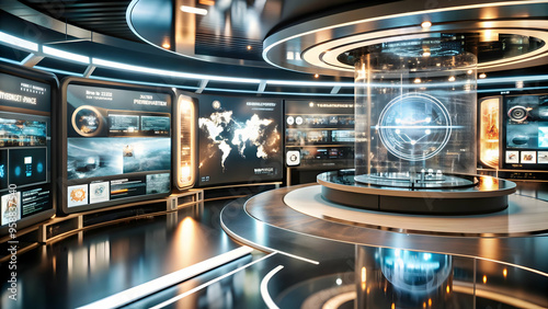 Futuristic AI Powered Innovation Hub: Transformational Technology with Budget-Friendly Solutions - Conceptual Design of Digital Screens and Holographic Interfaces Emphasizing Innovation and Cost Manag