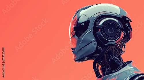 Futuristic AI Robot With Glowing Eyes and Helmet in Profile View. Generative AI