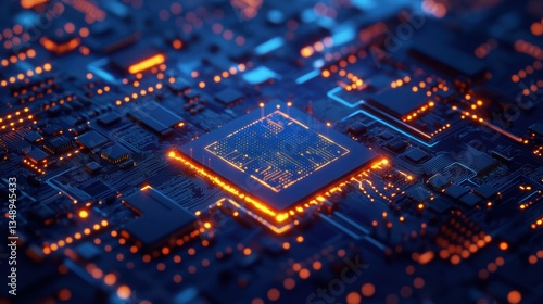 Futuristic AI-powered Processor Chip with Glowing Circuitry