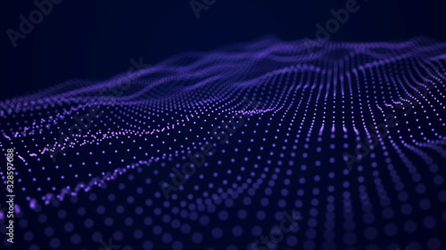 Futuristic background of dots and lines with a dynamic wave. Big data. 3d rendering.