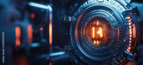 Futuristic Bitcoin Symbol Surrounded by High-Tech Mechanisms and Glowing Lights