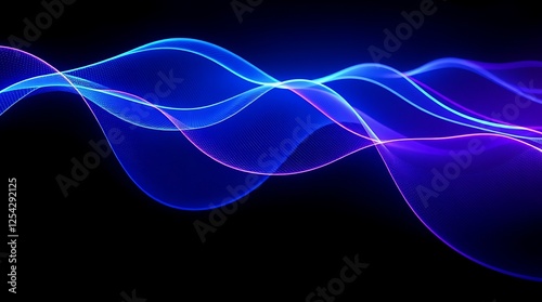 Futuristic Blue and Purple Wave Lines with Light Gradient on a Dark Background, Showcasing Abstract Technology, Big Data Visualization, and Digital Innovation in a Stunning 3D Rendered Design.