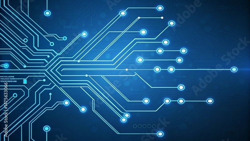 Futuristic Blue Circuit Board Background with Glowing Lines and Digital Technology Theme